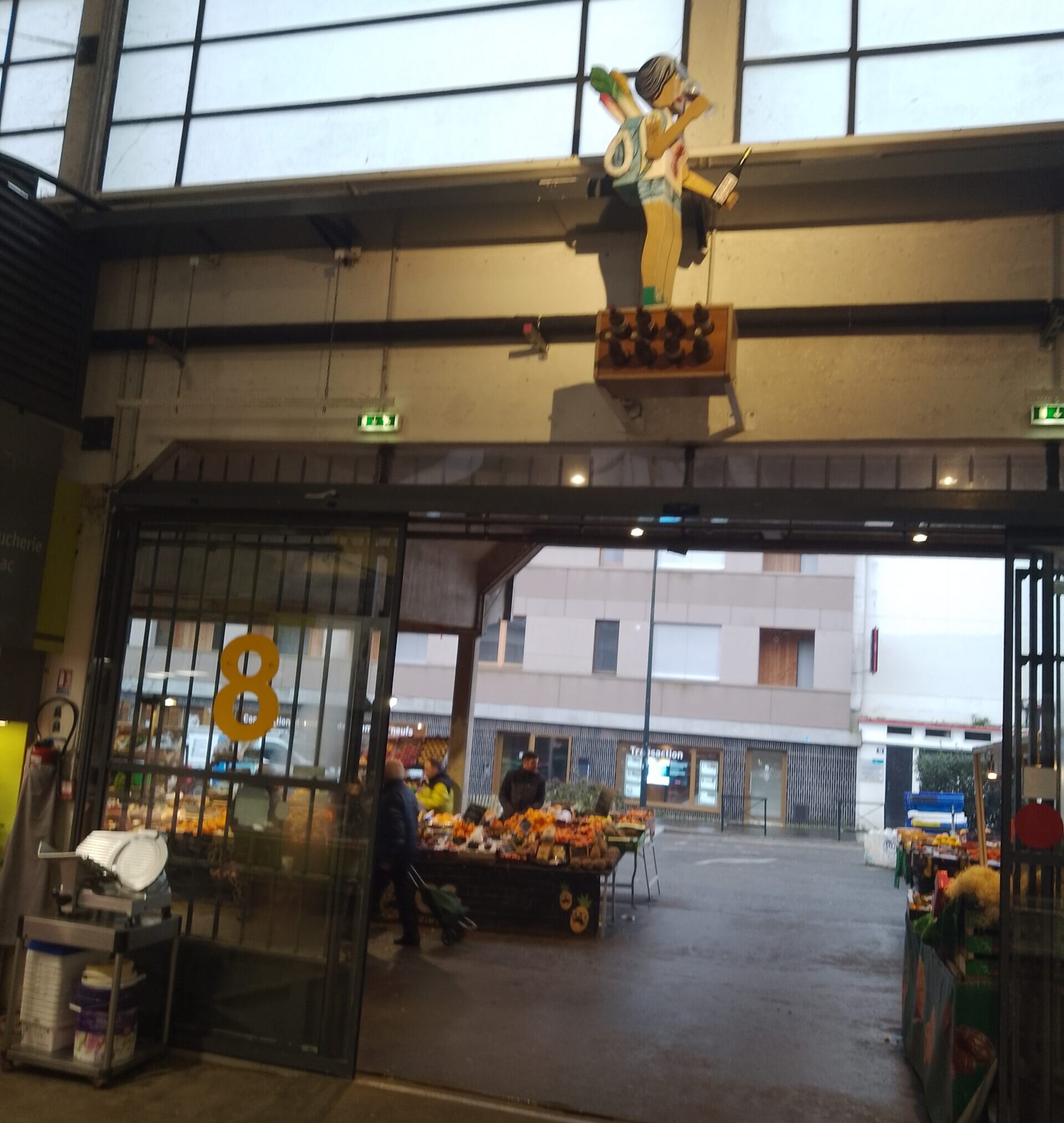 En esta ciudad donde me toca vivir por un rato, vi en la acera una línea verde muy estrecha y me puse a caminar sobre ella, hasta que apareció una señal: SUIVEZ LA LIGNE VERTE.( SIGA LA LÍNEA VERDE). Estaba cerca del mercado central y como era temprano y hacía mucho frío, entré. La línea me llevó a los autómatas de Gavin Prike, una serie de 10 androides o robots interpretando una historia de amor, situados cada uno encima de las diferentes entradas del mercado. Esta línea, ideada por la sociedad pública” El viaje a Nantes”, forma parte de un plan para descubrir la ciudad caminando, sus plazas y monumentos, su historia, su arquitectura y también obras encomendadas a varios artistas contemporáneos.