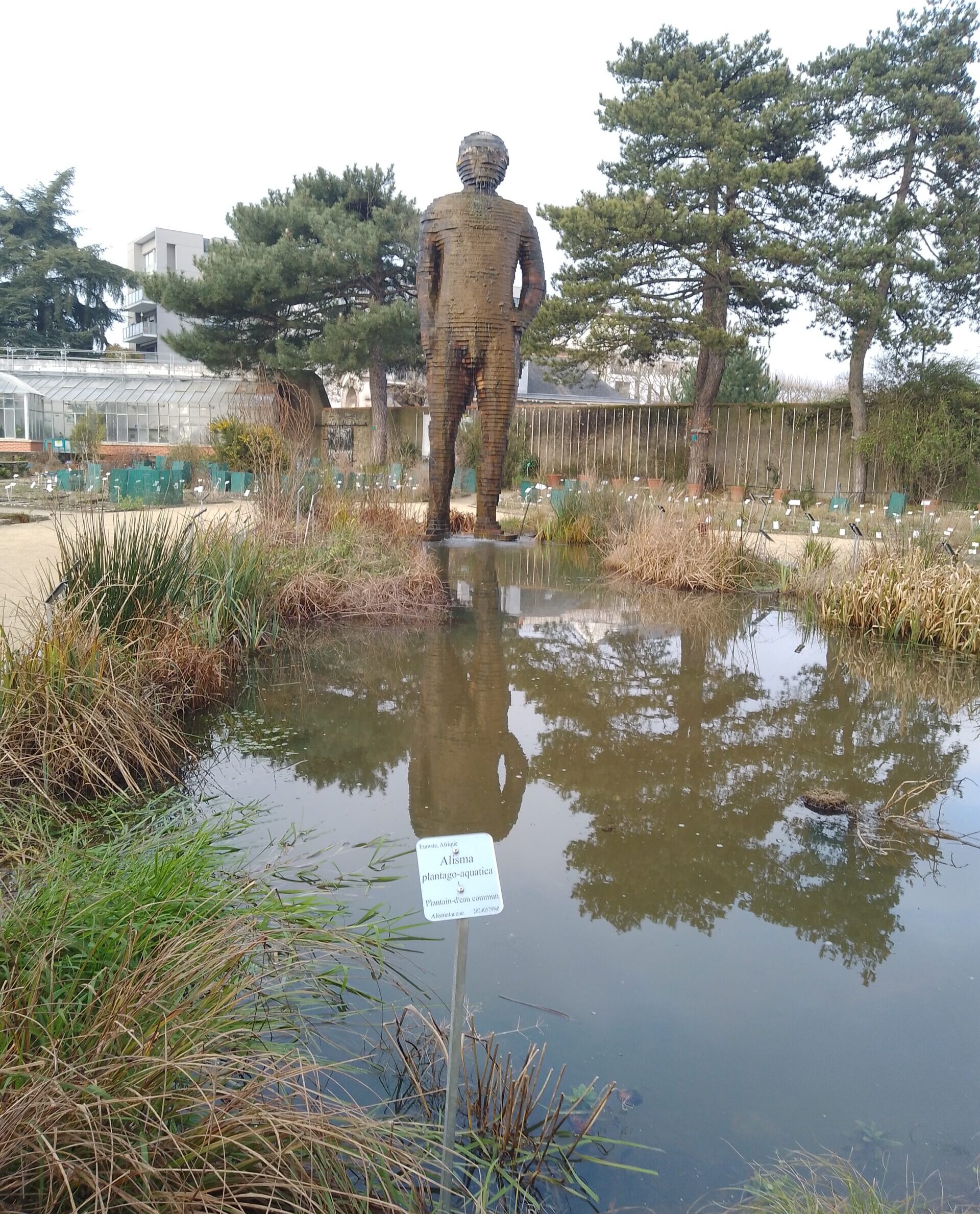 En el jardín botánico pasé del gigantesco (6 metros y pico) hombre de madera bañado en agua y orinando suavemente al depodepo, una ciudad tipo pitufos donde los niños pasean dentro de grandes macetas de flores que se supone pertenecen a un gigante jardinero y vi en lo alto de los árboles unos personajes humorísticos que me sonreían (Fililí Viridi), obras todas de artistas locales.
