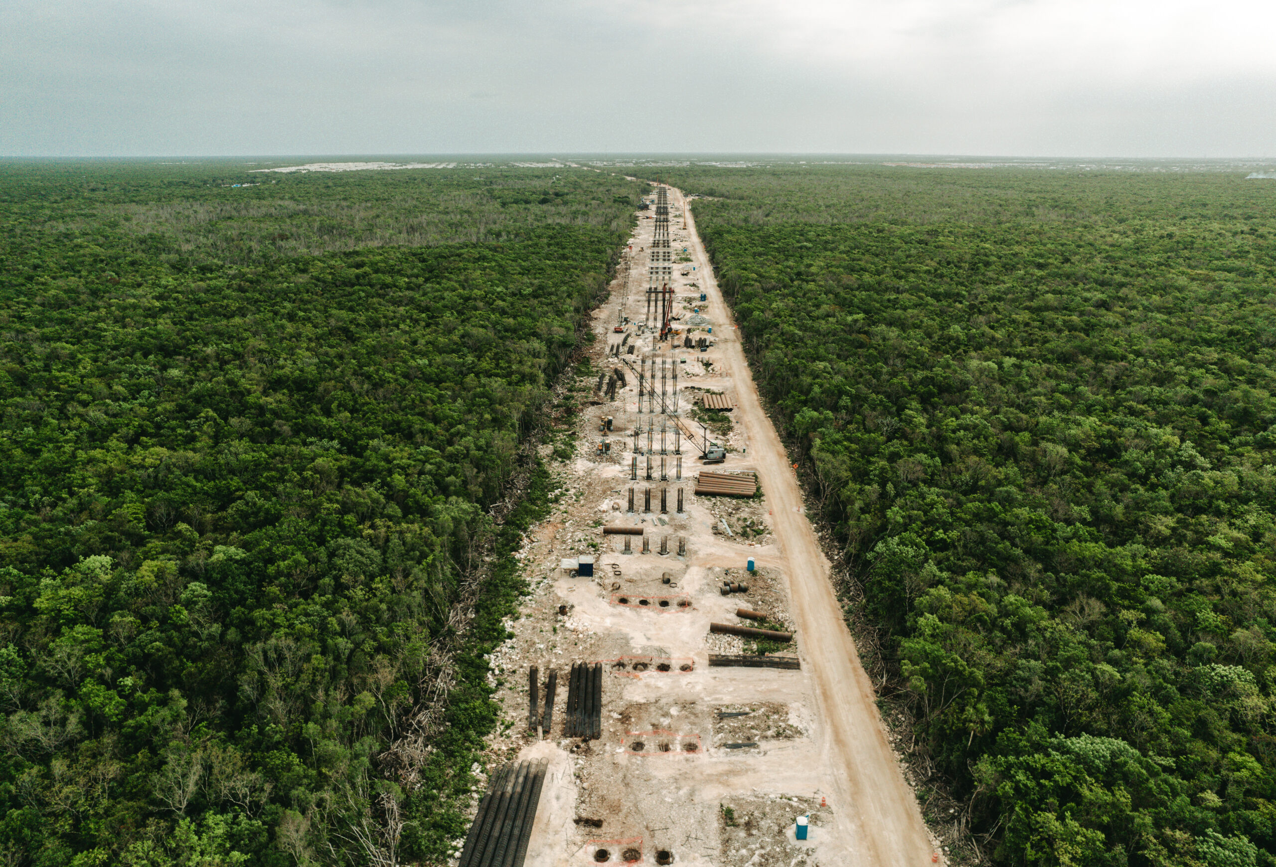 Santos, Bacalar y Othón P. Blanco del estado de Quintana Roo y Calakmul del Estado de Campeche. Así como la destrucción de cenotes, en cuanto a esto, diversas organizaciones ambientalistas han denunciado que la construcción el Tramo cinco (5), que abarca los municipios de Benito Juárez, Solidaridad y Tulum, ha afectado dramáticamente a los cenotes y cavernas, pues se han rellenado y tapado con piedras y utilizado 17,000 pilotes de 1.2 metros de diámetro a 25 metros de profundidad para sostener las obras del tren, causando daños que son irreversibles para los ecosistemas de la región y pudiendo colapsar sus frágiles capas geológicas.