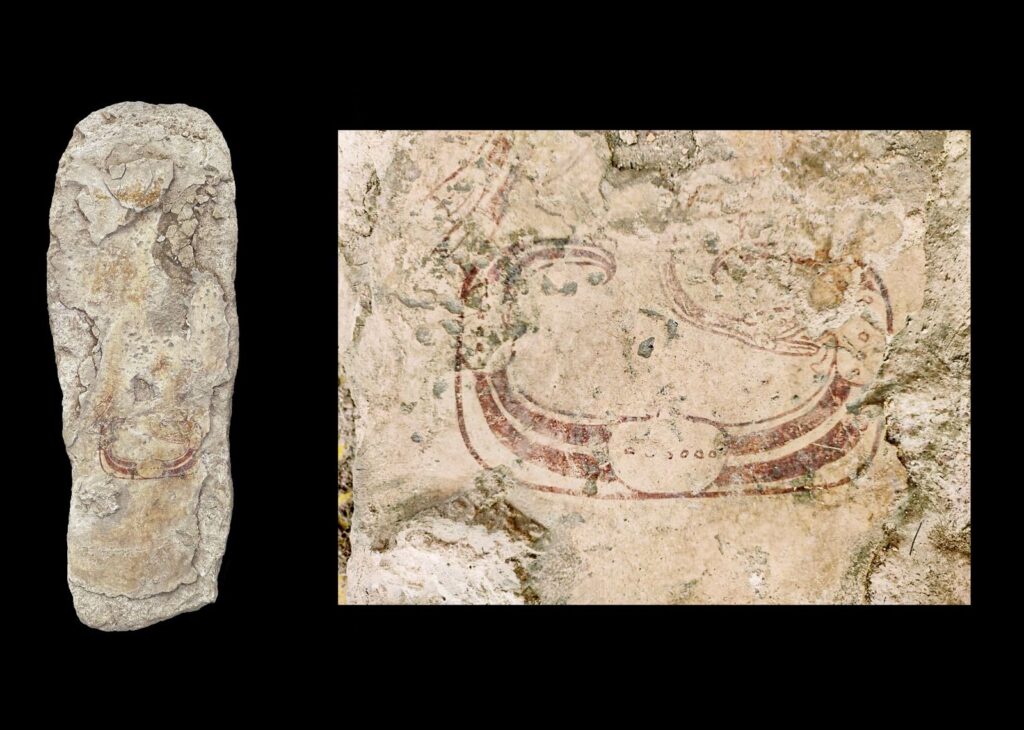Expertos del Instituto Nacional de Antropología e Historia (INAH), descubrieron una pintura mural inédita en un bloque de piedra usado por los antiguos mayas como tapa de bóveda, en una de las estructuras de la Acrópolis de Ek’ Balam. Con esta suman ya siete tapas de bóveda pintadas recuperadas en el último año en esta zona arqueológica de Yucatán.