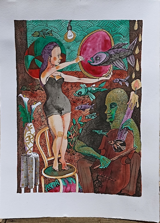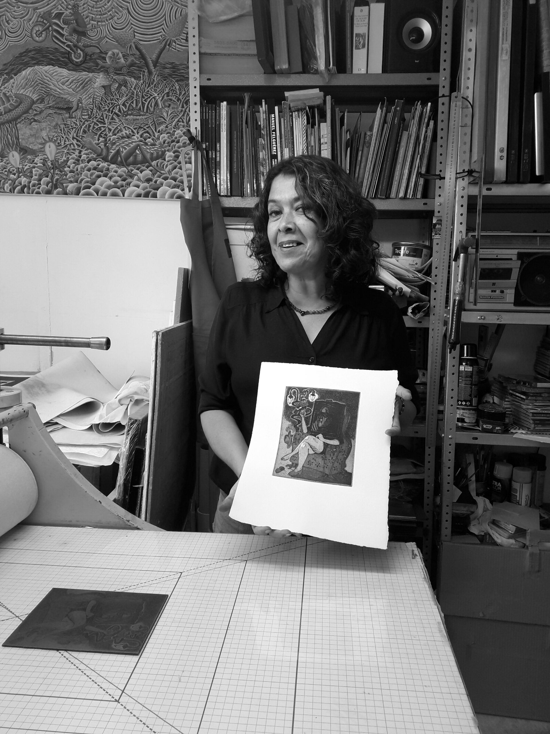 Llena de color algunas fotografías impresas en blanco y negro, tal como hacía en los inicios de la historia de la fotografía y color.