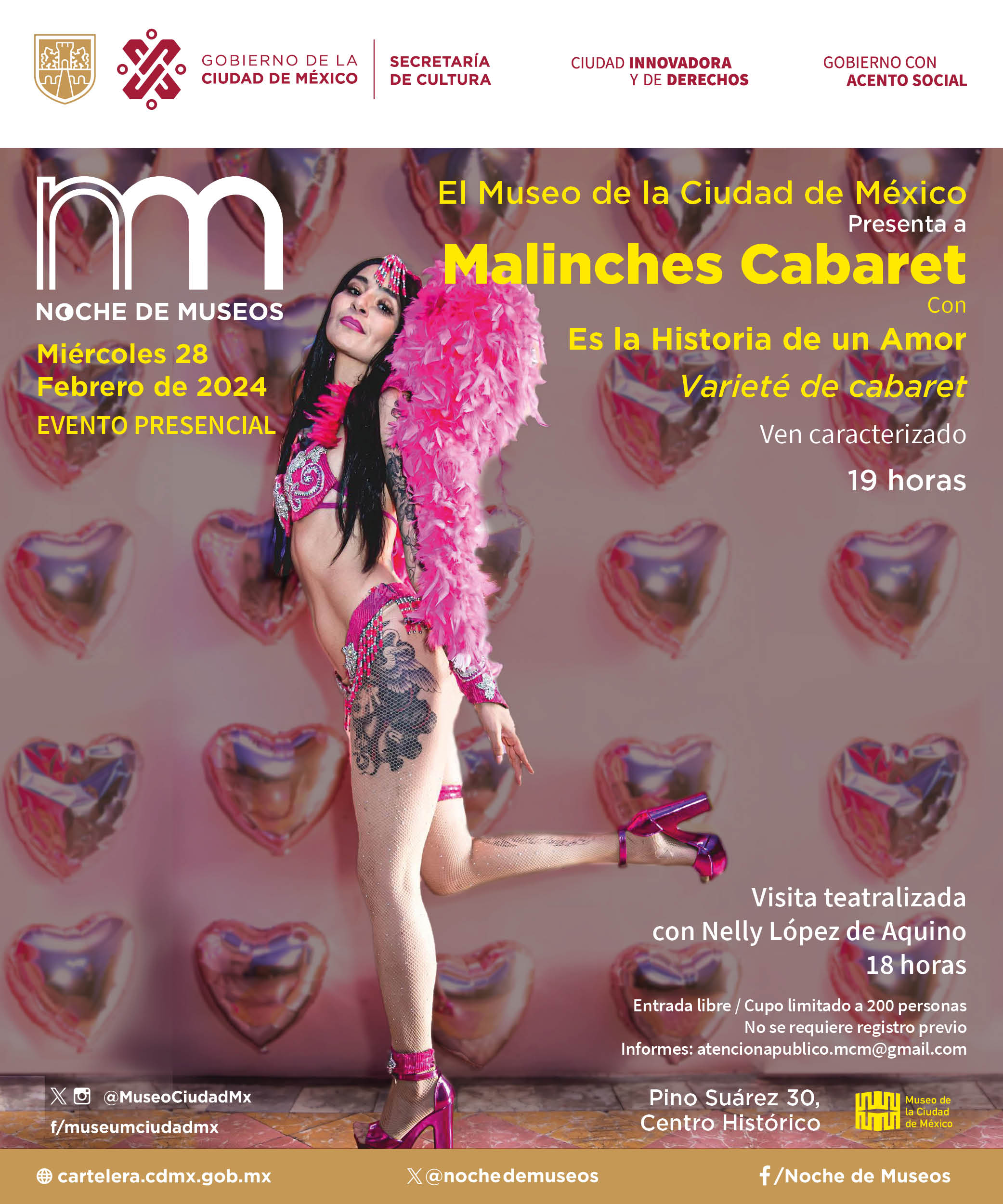 19 h. «Es la Historia de un Amor Varieté de Cabaret» con Malinches Cabaret .