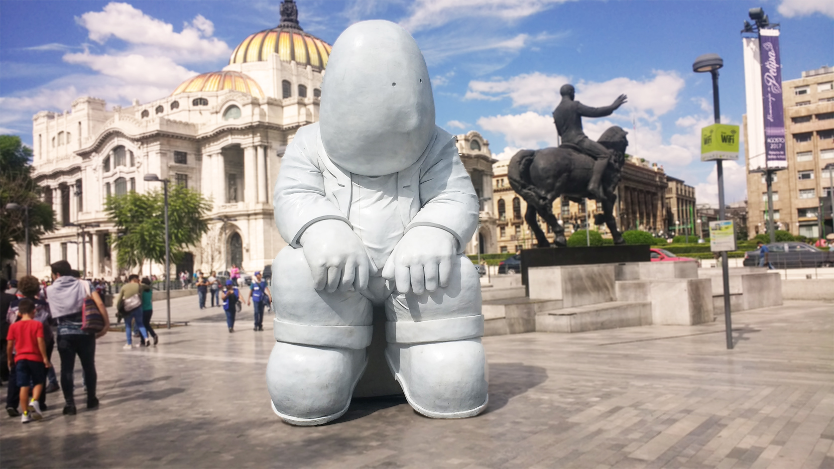 se pone en pie, veraz, como una estatua.