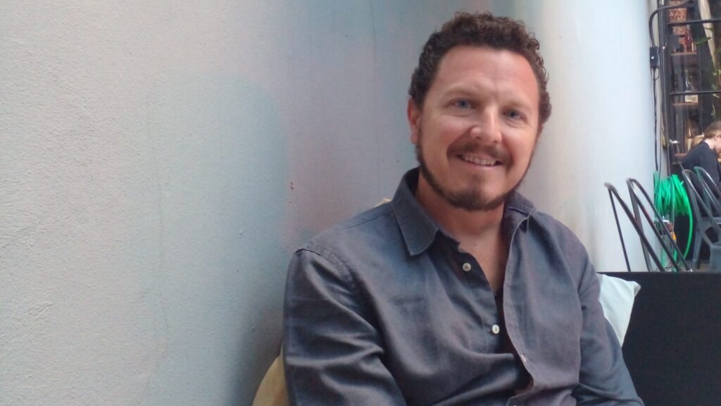 -Básicamente en la cama, es lugar curioso para escribir, pero me gusta, me gusta ponerme en la computadora en el pecho y con la mano izquierda y la mano derecha escribir con un solo dedo de cada mano, el índice izquierdo va a las mayúsculas, pero siempre escribo con el índice derecho, -soy el dedo más rápido del oeste escribiendo- dice entre risa -y me resulta muy cómodo escribir en la cama, pero cuando me pongo serio- hace una pausa y pega levemente la mesa- escribo aquí donde estamos, esta es mi compañera.