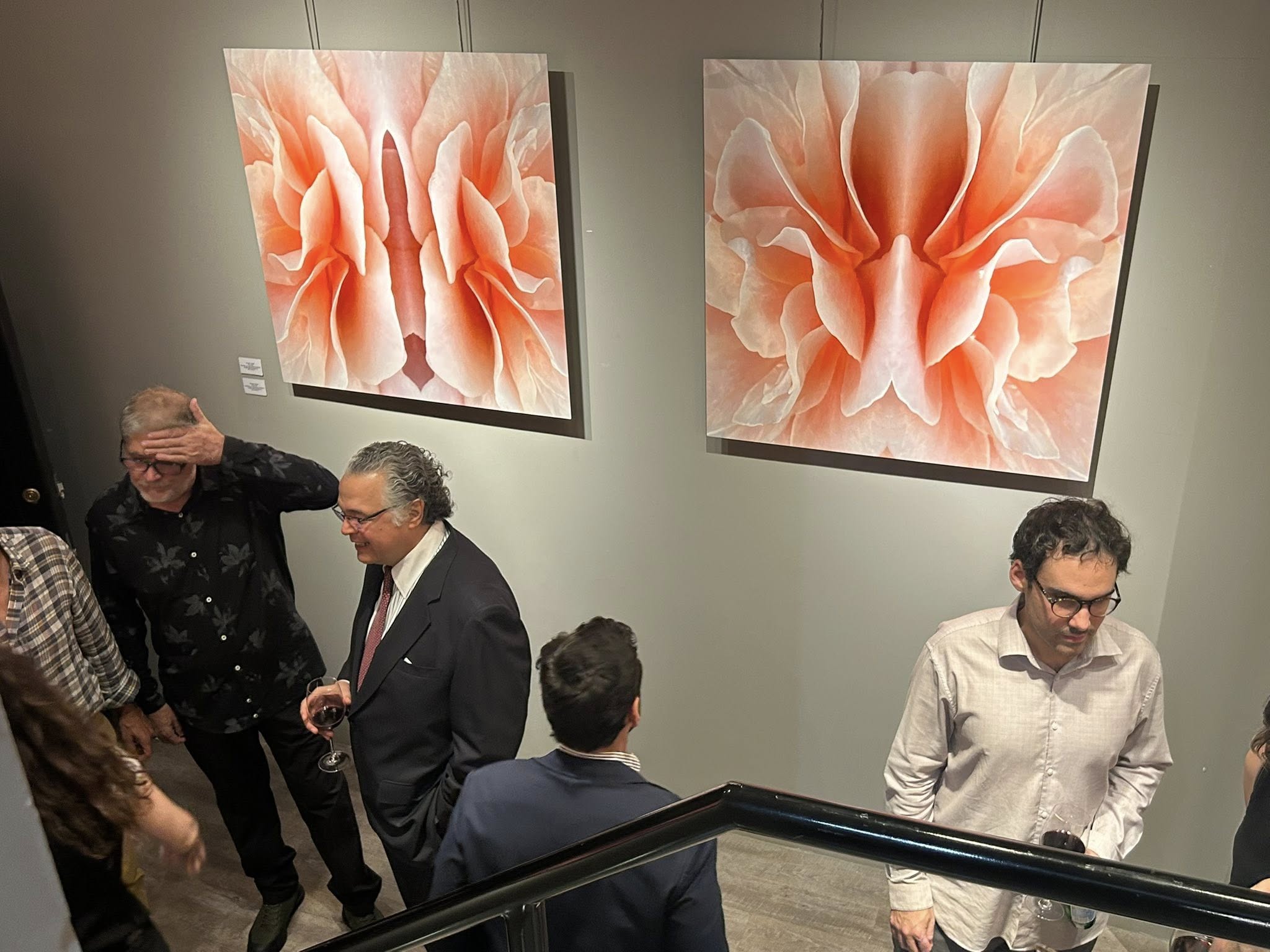 Hugo Maza es un director y productor audiovisual que ha encontrado en las flores un motivo y una metáfora central para la vida: las flores son una expresión intensa de energía. «Para él –explica el texto de sala preparado por Juan Pablo Aguilar– condensan significados culturales de gran importancia: cargan y transmiten alegría en su gesto más sencillo, acompañan el duelo, evocan la fugacidad, el renacimiento y también el misterio. Esa es la energía cultural que portan en su acontecer cotidiano: cuando regalamos flores, cuando la ciudad se transforma con la llegada de la primavera y nos envuelve un recordatorio del tiempo cíclico, o cuando nos vemos sumidos en el acto contemplativo (…) Pero existe otra energía, más sutil, que se activa al acercar el cuerpo a las composiciones y objetos que Maza ha producido. Proviene, por antonomasia, de zonas quizás más ocultas de nuestro ser. Esta serie forma parte de un ciclo de creación iniciado durante la pandemia de COVID-19 (…) Luego vino la investigación –un proceso también prolongado de nutrición conceptual a través de textos- y, finalmente, la refinación formal de su trabajo. Hoy, ese recorrido le permite compartir su interés estético y artístico, que brota desde la contemplación y el asombro. Subconscious Bloom sostiene que, a través de la simetría y de las formas florales cuidadas y construidas por el artista, no se representa naturalmente el florecer de una flor, sino el de los impulsos internos – afectivos y psíquicos- que nos habitan», explica en su texto el coordinador de Picci Fine Arts.